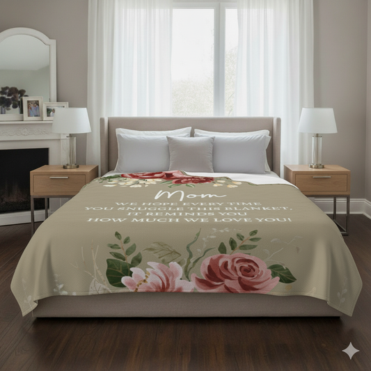 Mom Blanket Personalized Floral Velveteen Plush Blanket, Gift for Mom from Daughter or Son, For Mothers Day,Birthday or Christmas
