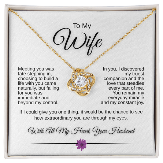 “To My Beautiful Wife” Eternal Love Knot Necklace – Heartfelt Gift from Husband | Anniversary, Christmas, or Birthday Surprise
