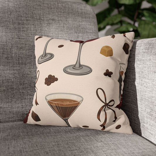 Cozy Cocktail Lounge Decorative Pillow Coffee & Chocolate Pattern Cushion Neutral Gift for Home Bar, Kitchen, or Patio Decor