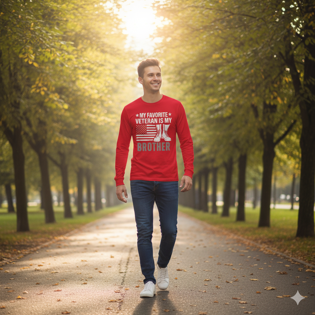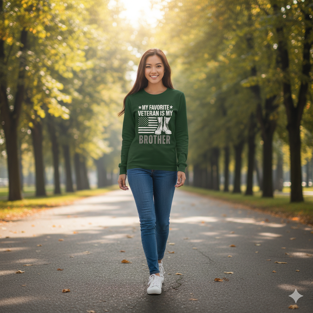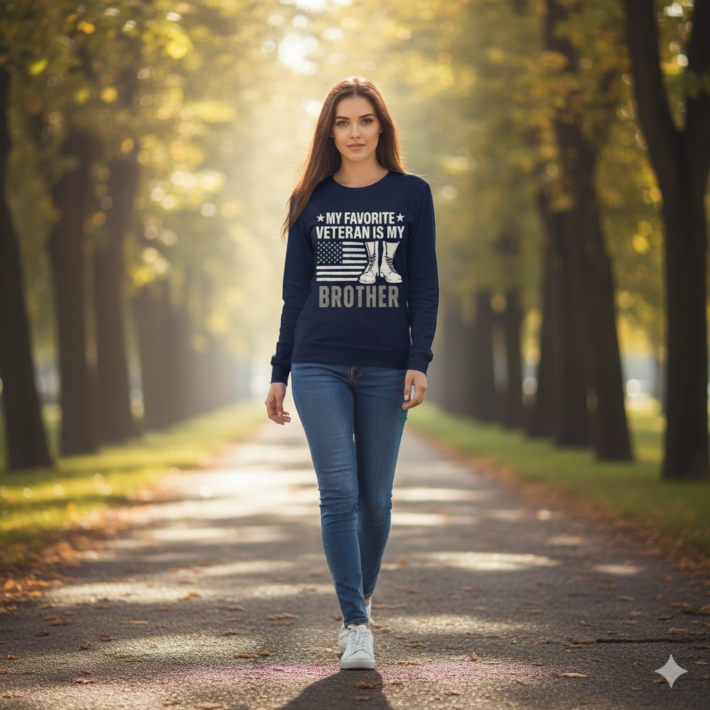 Some heroes wear boots — and one of them is your brother. Celebrate that bond with the “My Favorite Veteran Is My Brother” shirt — a tribute to courage, family, and unshakable pride.